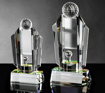 - A simply brilliant contemporary golf trophy in two sizes of optical glass